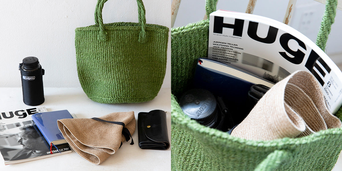 ケニア内陸部に住むカンバ族の女性の手仕事。en plusのサイザルバスケットは、ケニアの首都ナイロビから少し離れたマチャコス、キツイ地方の職人たちの手によるものです。