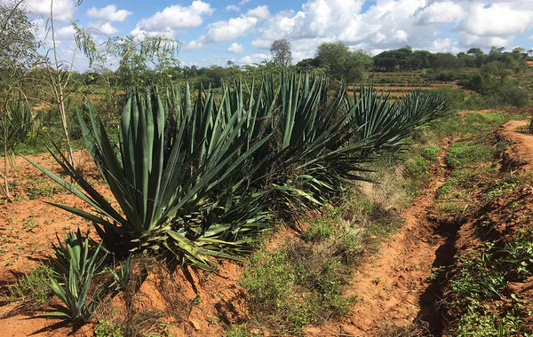 ケニアの中でもマチャコス、キツイなどのエリアで多く育てられ、道の脇にサイザルが続く光景をよく見ます。つらなっているのは根っこで繋がっていることも関係しているようです。この地方ではサイザルだけでなくにたような形状の植物をたくさん見るのでこの地方の気候にサイザルはとても適しているのでしょう。