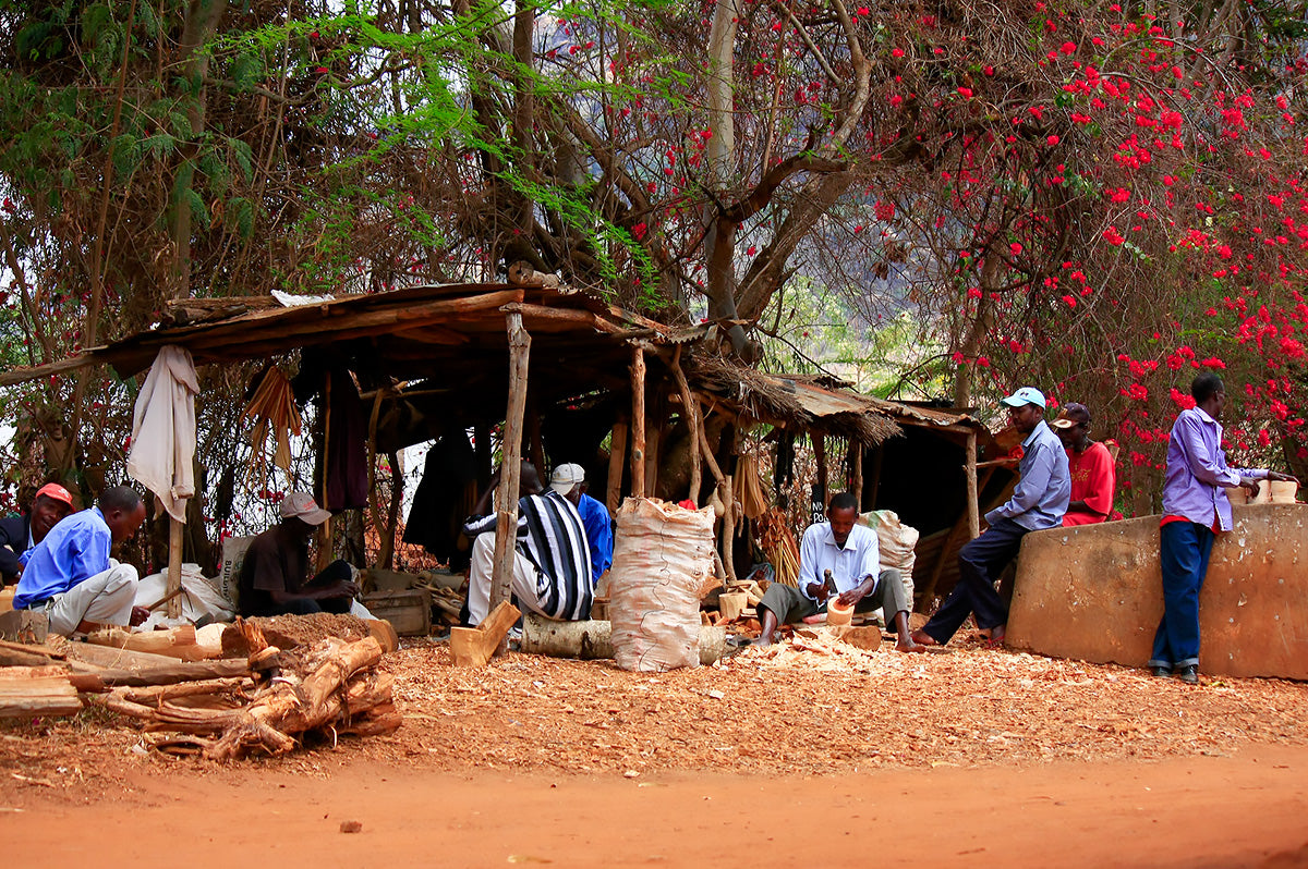 木を彫るのはカンバ族の男性で、やすりがけは女性の仕事です。ふだんはキリンやシマウマなどの動物を彫ることが多い彼らに、en plusのデザインを伝えて、ひとつひとつ手作業で作ってもらっています。